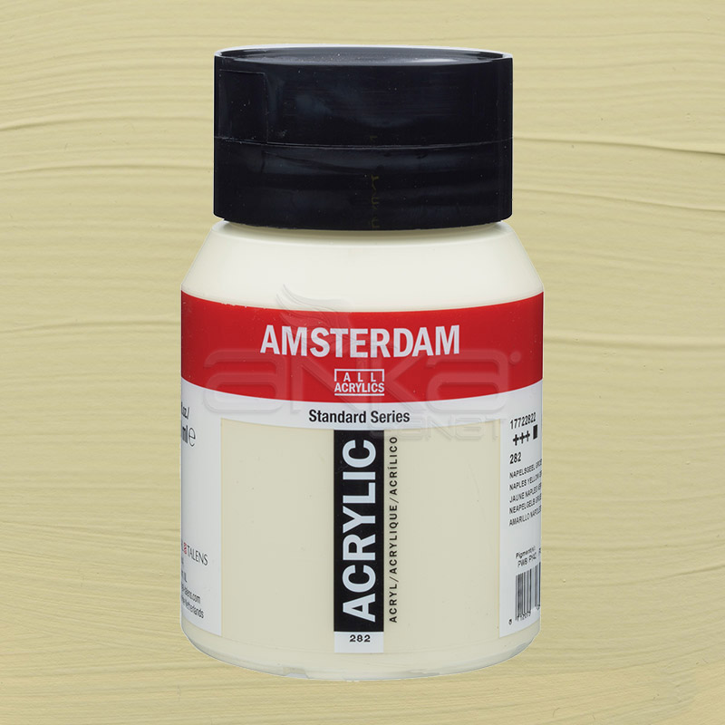 Amsterdam Akrilik BoyaAmsterdam Standart serisi, akrilik ressamının ihtiyaç duyduğu her şeyi sunar.Amsterdam akrilik boyalar çok kaliteli ve zehir içermeyen pigmentlerden üretilmiştir.Amsterdam akrilik boyalarda kullanılan bağlayıcılar çok kuvvetlidir.Ayrıca Amsterdam akrilik boyalar, saf akrilik reçine kullanılarak üretilmiştir.Yüksek derecede ışık haslığıvardır.Amsterdam akrilik boyalar su ile kolayca inceltilebilir.120 ml ve 500 ml çeşitleri vardır.