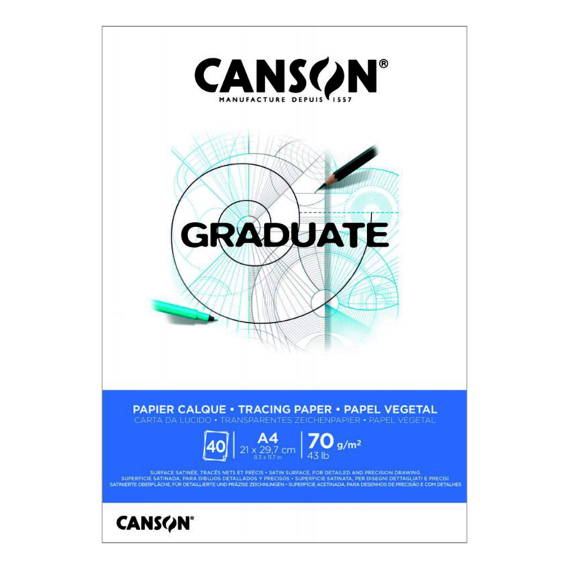 • Canson Graduate Tracing Paper (Aydınger Bloğu), hem öğrenciler hem de hobi amaçlı çizim yapanlar için tasarlanmış, yüksek kaliteli ve şeffaf yapılı bir teknik çizim kağıdıdır. Canson’un "Graduate" serisi, uygun fiyatla profesyonel kaliteyi birleştirmeyi hedefler.