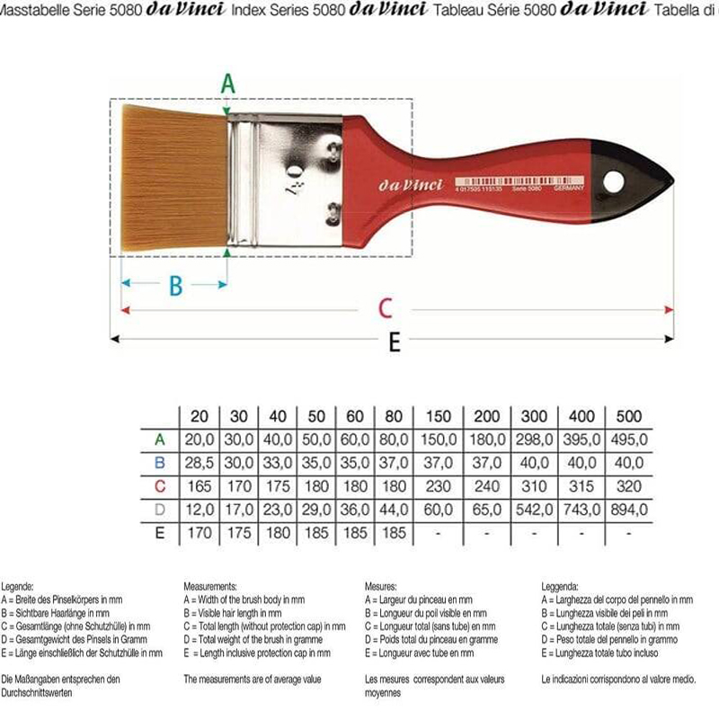 Da Vinci Spin Sentetik Ekstra Yumuşak Düz Uçlu Geniş Yüzey Fırçası Seri 5080 No:50