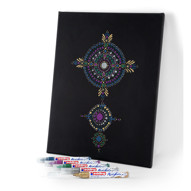 Edding 5100 Akrilik Marker Kalem 2-3mm Yuvarlak Uç 5li Metalik RenklerResim yapan herkes, bu akrilik boya markörleri ile malzemelerine güç katar. Bir markör gibi şekillendirilmiş olan bu akrilik boyanın kullanımı, tüp içinde kullanılan geleneksel akrilik boyanın kullanımına göre çok daha kolaydır. Valf sistemi sayesinde, boyayıyüzeye doğrudan uygulayabildiğiniz gibi, eşit bir akış elde edebilirsiniz. Hassas ve sorunsuz bir şekilde uygulanır, doğal yaratıcılığa olanak tanır. Ucun geniş kenarı, daha kalın çizgiler çizmek ve daha geniş alanlarıboyama amaçlıkullanılır. Tuval üzerine çalışılan ayrıntılısanat eserlerinden tebrik kartlarıüzerinde çizilen resimlere kadar pek çok farklıkullanım alanına sahiptir. İpucu: renkler birbiriyle karıştırılabilir veya kat kat uygulanabilir. Bu akrilik markörler edding 5200 permanent sprey ile de uyumludur, örneğin bir tuvalin yüzeyini boyamak için spreyleri kullanabilirsiniz. Sprey boya kuruduktan sonra üzerine akrilik kalemler kullanılarak çizim yapılabilir. Her iki ürün türüne ait renkler birbiriyle son derece uyumludur. İlk kullanım öncesinde, markör şu şekilde aktif hale getirilmelidir: İlk önce, kapak takılıvaziyetteyken markörü kuvvetlice sallayın, ardından kapağıçıkarın. Ucu aşağıbakacak şekilde iken kalemi bir kağıt üzerine bastırın ve mürekkep kalemin ucuna doluncaya kadar kağıt üzerinde birkaç kez dikkatlice aşağıyukarıbastırın. Markör artık kullanıma hazırdır. Kapak, markörün arkasına takılabilir. Yatay olarak ve oda sıcaklığında (5-30 C) saklayın. Üstün kaliteli marka ürünü. Almanya,da üretilmiştir. Açık veya koyu yüzeylerde kolay ve doğal çizim imkanısunan orta uçlu akrilik kalem, tuval, akrilik kağıt ve boyama tahtalarıgibi malzemeler için idealdir. Üstün kaliteli akrilik markör, su geçirmez, su bazlıpigment mürekkep, örtücü, ışığa dayanıklıve kalıcı, temiz bir uygulama ve mat bir görünüm için. Sağlam, orta kalınlıkta yuvarlak uç, tuval üzerine hassas çizgiler ve şekiller çizmek için idealdir, yedek uçlarımevcuttur.Set 5 adet akrilik markörden oluşmaktadır &ndash, yosun yeşili, orman meyvesi (mor), gece mavisi (koyu mavi), altın ve gümüş.