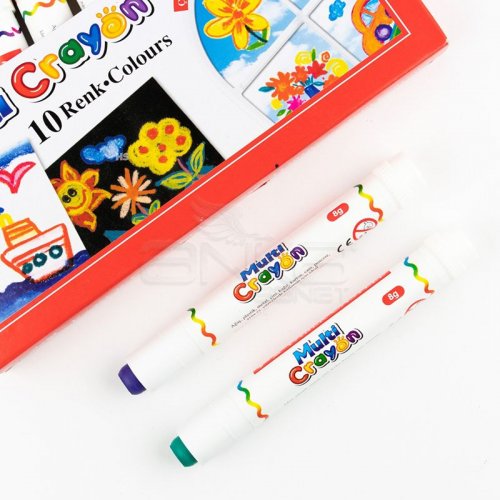 Faner Castell Multi Crayon Pastel Boya 10lu 5281112010Yüksek pigment yoğunluğu sayesinde üstün boyama kalitesiFırça ve su yardımıyla suluboya etkisi Renk karışımlarında zengin çeşitlemeler Canlıve örtücü renkler Ağaç, plastik, metal, çini, kağıt, karton, cam, pencere, ayna vb. yüzeylerde kullanım için ideal Renk yoğunluğunu kaybetmeden yayılma Rahat ve yumuşak kullanımRenkler: Beyaz, limon sarı, ten rengi, turuncu, kırmızı, yeşil, mavi, mor, kahverengi, siyah