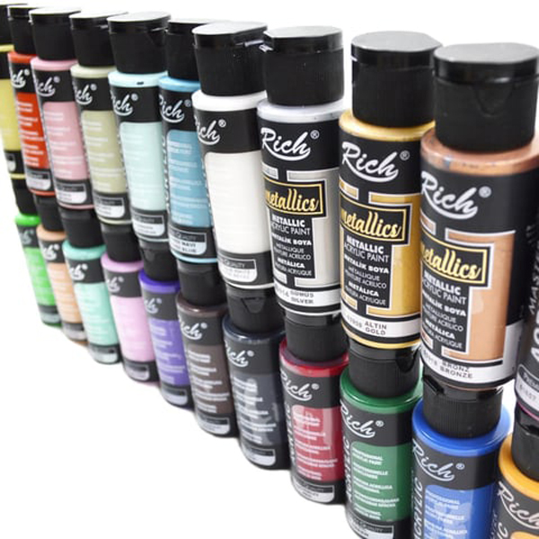 Rich Mastermix Akrilik Boya Seti Ana Renkler 30lu 60ccRich Acyrlic paint dekorasyon ve sanatsal hobi çalışmalarında kullanılan su bazlı boyalardır.Sağlığa hiçbir zararı olmayan yüksek kalitesiyle darbelere silinmelere sürtünmelere karşı oldukça dayanıklıdır.Ahşap, cam, seramik, mdf, tuval ve polyester gibi farklı yüzeylerde rahatlıkla kullanılabilir.Yarımat görünüme sahip olan Rich acry’ler özel yapısıgereği her türlü su bazlı ve solvent bazlı vernikler ile çalışmaya uygundur.