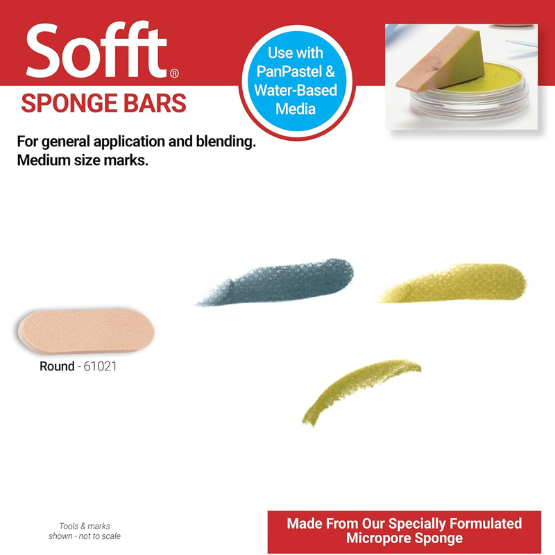 PanPastel Sofft Yuvarlak Bar Sünger (61021), PanPastel'in en çok yönlü uygulama araçlarından biridir. Bu set, 3 adet uzun formda (bar şeklinde) ve uçları yuvarlatılmış sünger içerir. Daha önce sorduğunuz 61042 kodlu disk şeklindeki yuvarlak süngerlerden form ve kullanım amacı olarak ayrılır.