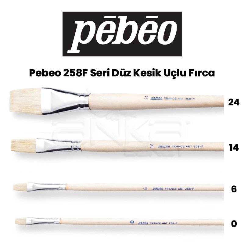 Pebeo'nun 258 F serisi fırçaları, özellikle yağlı boya ve akrilik boya uygulamaları için tasarlanmış, düz kesik uçlu ve sert doğal kıllı fırçalardır.