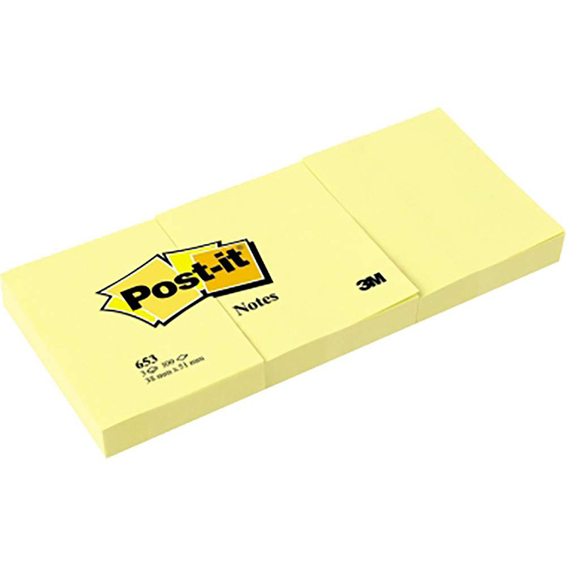 ?3M Post-it Yapışkanlı Not Kağıdı 653-38x51 3lü SarıPost-it® Sarı NotlarPost-it® Notunuzu defalarca yapıştırıp çıkartabilirsiniz.Yüzeye zarar vermez, yapıştığı yerde iz bırakmaz.Post-it® Notların üzerine her türlü kalemle yazabilirsiniz.Yüzeyi mürekkep geçirmez.