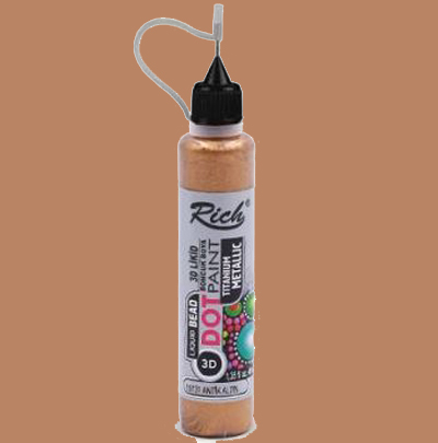 Rich Dot Paint Boncuk BoyaLikid boncuk boya Sanatsal ve Hobi çalışmalarında en ince detayların uygulama kolaylığınısağlayan proje ürünüdür.Kendine özgü ergonomik ambalaj yapısı, uygulama esnasında rahat kullanımıözel sivri iğne uç başlığıile 3 boyutlu tasarımların hazırlanmasına yardımcıolur.Uygulama sonrasında yayılma yapmaz ve renklerin üst üste çalışılmasına izin verir. Kuruduktan sonra parlak bir görünüm kazanır.Su bazlıdır.