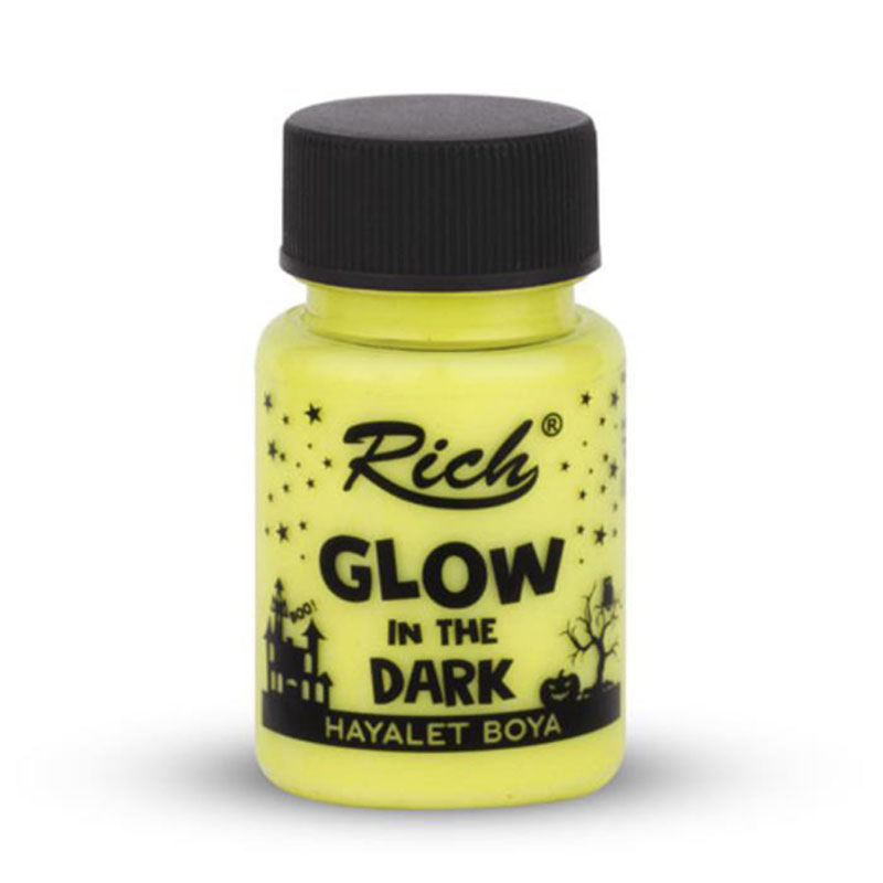 Rich Karanlıkta Parlayan Boya Glow In The Dark 50ml 3016 SarıKaranlıkta parlayan boya ışığıemen ve ışıklar kapatılınca karanlıkta emdiği ışığıyansıtan boyalardır. Dekoratif amaçlıkullanıldığıgibi resim tekniğinde de kullanılır.Her türlü yüzeyde kullanılabilirUzun raf ömrü ve farklıgramajlarda ki ambalajlarıyla değişik ihtiyaçlara hitap eder.Özel pigmentleri sayesinde yüksek kapatma gücüne sahiptir.Kalite standardlarına uygun, nontoksik, kolay karışabilen, pürüzsüz ve kremsi olup, ıslak iken su ve sabun ile kolayca temizlenebilir.
