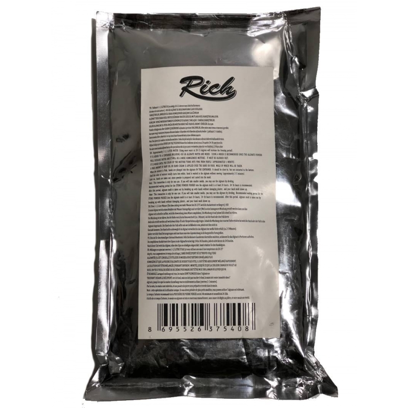 Yaklaşık 1-1.5 litre su (sıcaklığı20-25 derece suyu fazla kullanmanız donma süresini artırır).450 gram aljinat su bulunan kaba ilave edilerek karıştırılır. (Mikser ile daha homojen bir karışım olacağından aljinat tozu daha hızlıeriyeceğinden tavsiye edilir). Mutlaka hızlıkarıştırılmalıdır.