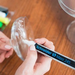 Schneider Maxx 245 Cam Markörü 1-3mm Cam levhaların ve çoğu cam yüzeyin tasarımıiçin 1-3 mm yuvarlak uçlu cam yazıtahtasıkalemi. Mürekkebin yüksek örtme kapasitesi vardır, ışığa dayanıklıdır ve silinebilir.Cam tahta kalemi parlak renklerle donatılmıştır ve valf kontrollü mürekkep akışına sahiptir.6 farklırenk seçeneği vardır.