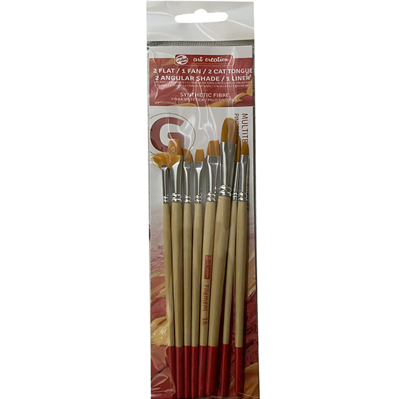 Talens Art Creation Fırça SetiTalens Art Creation, farklı boya teknikleri için çok çeşitli kaliteli fırçalara sahiptir.Bu fırçaları kullanmadan önce ılık su ve sabunla yıkayın.Sentetik uçlu fırçalardır.Aşınmaya karşı dayanıklıdır.Esnek saç demetine sahiptir.Suyu iyi çeker, damlama yapmaz.Bu fırçalar detaylı çalışmalarınızda ve geniş alanlarda pürüzsüz fırça darbeleri sağlar.