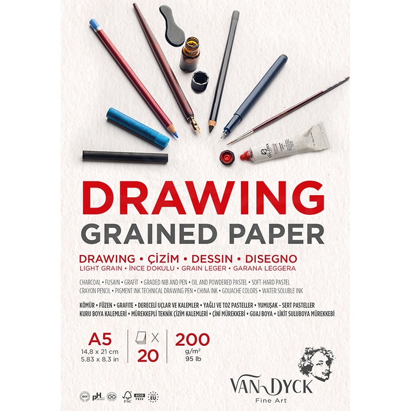 Van Dyck Drawing İnce Dokulu Blok 20 Yaprak 200gVan Dyck Drawing İnce Dokulu Blok 20 Yaprak 200g, sanatçılara çeşitli kuru medya teknikleri için güvenilir bir yüzey sunan bir çizim pedidir.Temel Özellikler:Kağıt Ağırlığı (200 gsm): Bu, dayanıklılık ve tepkisellik arasında iyi bir denge sağlayan orta ağırlıkta bir kağıttır.Kuru medyanın katmanlanmasını ve harmanlanmasını iyi bir şekilde halledebilir ve ayrıca önemli bir buruşma olmadan ıslak medyanın hafif yıkanmasına da dayanabilir.Sayfa Sayısı (20 Yaprak): Blok, birden fazla çizim ve çalışma için yeterli miktarda sunan 20 ayrı sayfa içerir.Doku (İnce Dokulu - İnce Doku): İnce doku, kağıt yüzeyine hafif bir diş sağlar.Daha İyi Tutuş: Kalem, kömür ve pastel gibi kuru ortamlar yüzeye iyi yapışabilir ve kontrollü uygulama ve katmanlama sağlar.İnce Efektler: Hafif doku, çizimlerinize hassas bir gren veya görsel ilgi katabilir.Biçim (Blok - Blok): Sayfalar genellikle bir tarafa yapıştırılmış şekilde birbirine bağlanır.Bu, çalışma sırasında kağıdın düzgün kalmasını sağlar ve tek tek bitmiş parçaların kolay ve temiz bir şekilde çıkarılmasını sağlar.Marka (Van Dyck): Van Dyck, belirli bir kalite standardı ve sanatsal kullanım için uygunluk öneren sanat malzemeleri alanında tanınmış bir markadır.Amaçlanan Kullanım: Bu çizim bloğu, aşağıdakiler de dahil olmak üzere kuru çizim ortamları için özel olarak tasarlanmıştır:Grafit kalemlerKömür ve fusainPasteller (hem yağlı hem de kuru)Renkli kalemlerÇizim mürekkepleri (kalemler veya ince uçlu kalemlerle)Özetle, Van Dyck Drawing İnce Dokulu Blok 20 Yaprak 200g, kuru medyayla çalışmayı seven ve kavramayı geliştiren ve kontrollü işaretlemeye olanak tanıyan ince dokulu bir kağıt tercih eden sanatçılar için uygun bir seçimdir. 200 gsm ağırlığı çeşitli çizim teknikleri için iyi bir stabilite sunar ve blok formatı hem çalışma hem de sanat eseri sunumu için kolaylık sağlar.